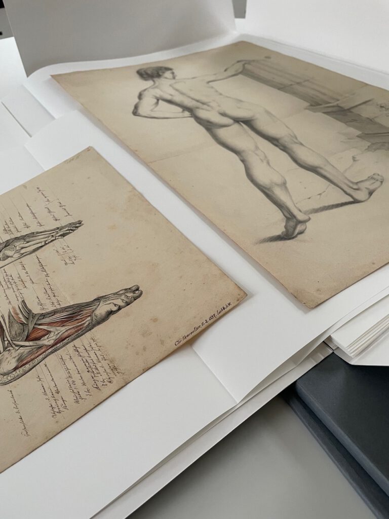 Darüber hinaus erarbeite ich Konzepte zur Verbesserung der Lagerungssituation und führe Verpackungsmaßnahmen durch – von einzelnen Konvoluten bis zu großen Sammlungen.